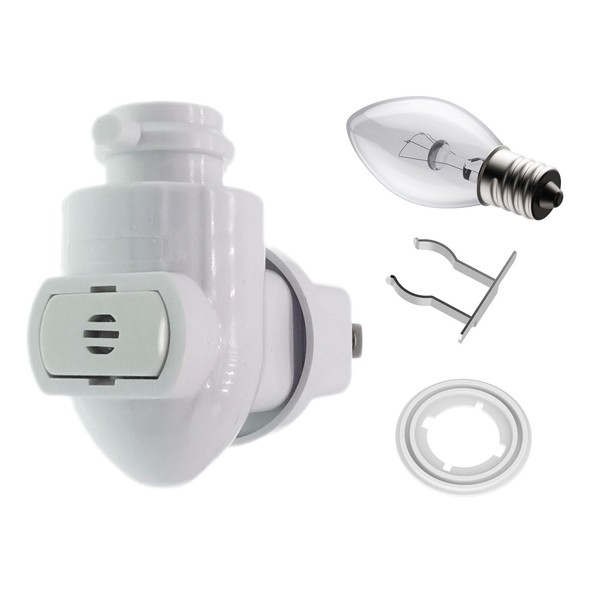 - NIGHT LIGHT BASE REPLACEMENT:White Plug in Night Light plug with Light Sensor Switch,1pcs 7W clear bulb,1pcs metal clip and 1pcs thread gasket inluded
