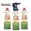 Jo Chef Pro Butane Torch Lighter - Refillable Butane Torch Head, Small Butane Torch with Safety Lock & Adjustable Flame - Culinary Blow Torch, Creme Brulee Torch, Baking, Included 3 Butane Canisters