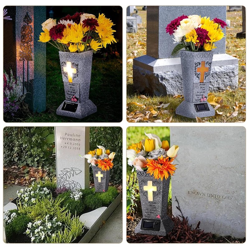 Ideal for cemeteries and memorial spaces, this solar memorial cemetery flower vase combines beauty and functionality in a timeless way.