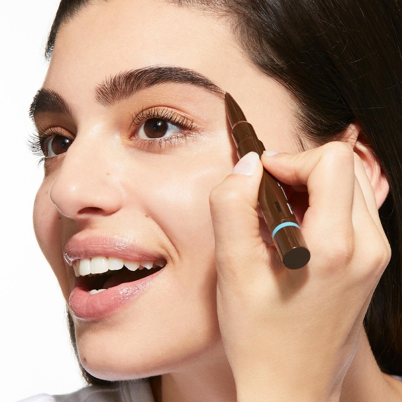 - Dual Brow Pencil and Gel: This 2-in-1 brow pencil and gel features a triangular tip that outlines and fills brows with precision, and a tinted gel to volumize brows, intensify brow color or hide greys, and keep brows neatly in place