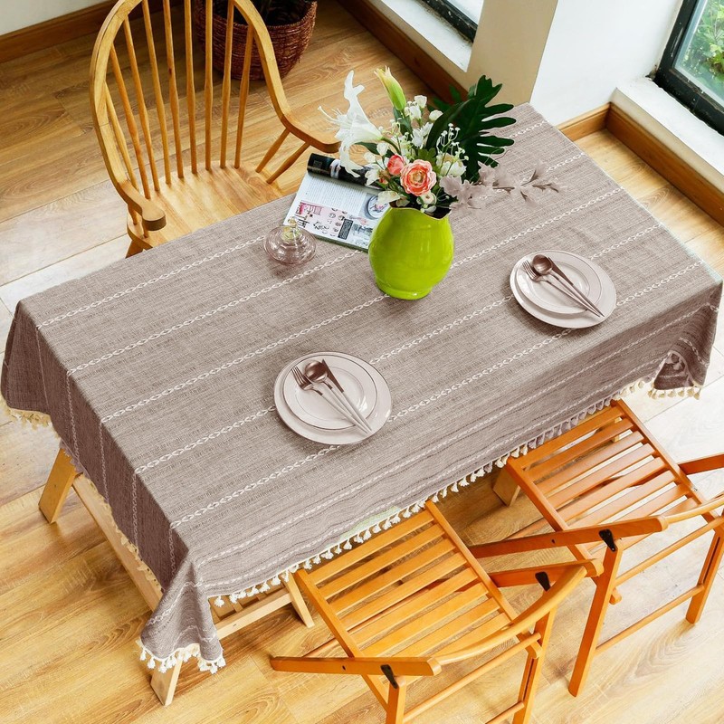 JOALGFDA Manteles para Mesas Rectangulares, Manteles de Algodón sin Arrugas, Manteles de Granja, Manteles de Tela Suave con Borlas, 4-6 Asientos (marrón, 140 * 180cm)