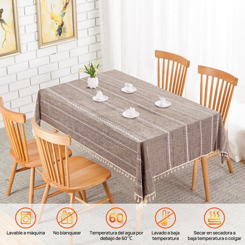 - 🌼Fácil de Cuidar:El mantel se puede lavar, admite lavado a máquina en frío y lavado a mano, se puede colgar para secar o secar a baja temperatura, no se puede blanquear, la costura de los flecos es firme y se mantiene bien después del lavado, se puede planchar a baja temperatura, el mantel puede quedar nuevo después del lavado.