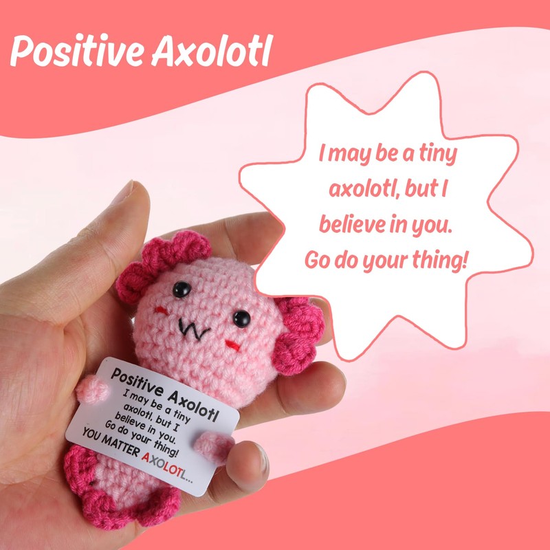 - 【Easy to Carry】The positive crochet axolotyl is small in size and easy to carry for travel or other outdoor activities. You can take it anywhere you want to go.The small size allows it to fit comfortably in your pocket, providing a source of encouragement and smiles during difficult times.