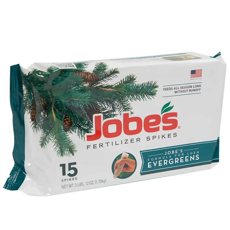 Jobe's Evergreen fertilizer spikes for all acid loving trees & shrubs. It's no secret that beautiful, healthy trees make your yd look spectacular. Jobe's fertilizer spikes for evergreen trees & shrubs ensures a continuous supply of nutrients below the surface, where the trees; active roots are growing. Jobe's spikes are easy to insert & are applied around a tree's dripline. The slow- release formula lasts all season. No wasteful runoff, no mess, hazards or smells; only a safe beautiful yd. Jobe's Evergreen fertilizer spikes will help your trees & shrubs thrive.
