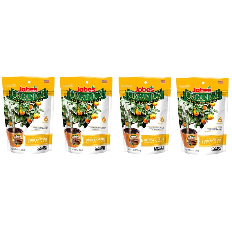 Jobe’s Organics Fruit & Citrus Tree Fertilizer Spikes, 3-5-5 Time Release Fertilizer for All Container or Indoor Fruit Trees, 6 Spikes per Package (4)