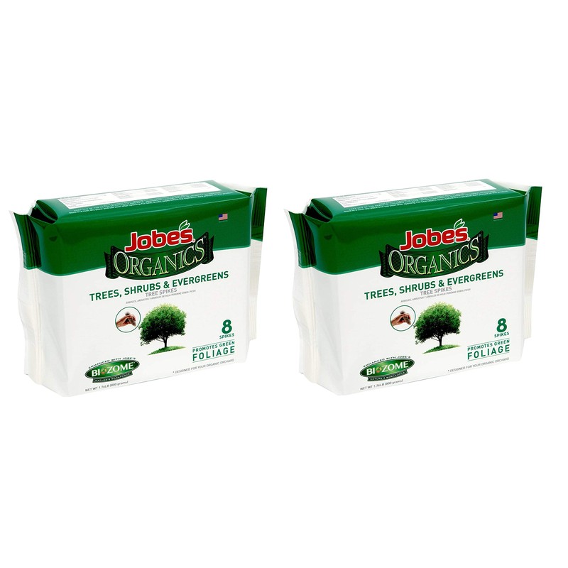 Jobe’s Organics Tree Fertilizer Spikes, 5-5-5 Time Release Fertilizer for All Shrubs & Trees, 2 Pack (10 Spikes per Package)