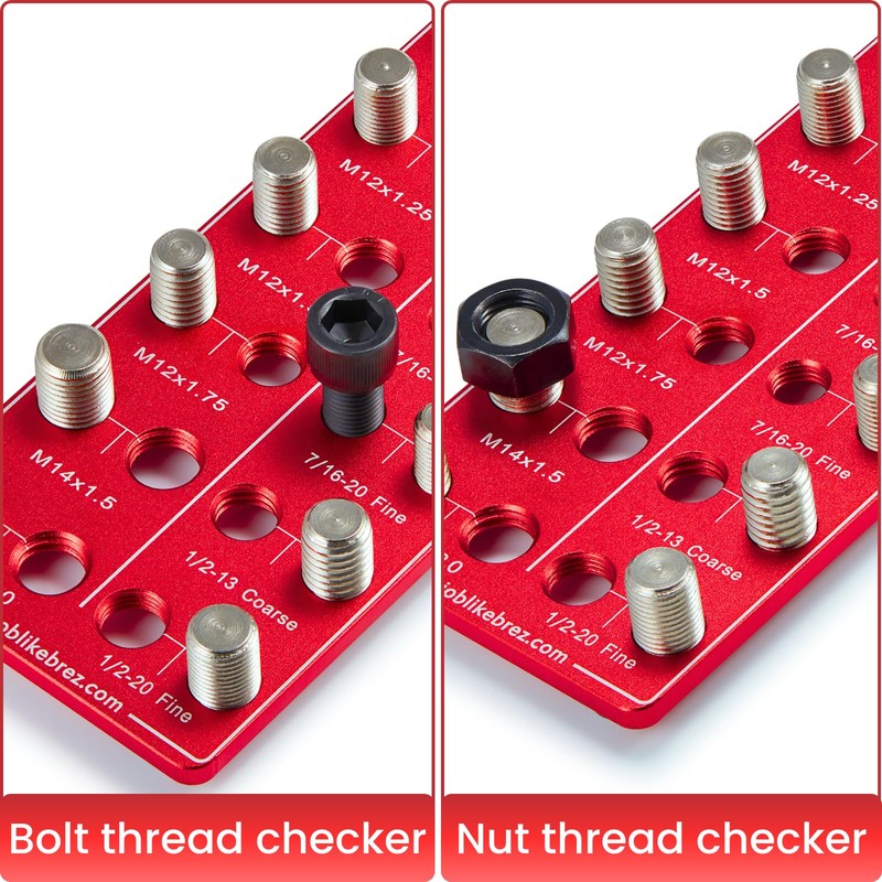 - 30 Nut and Bolt Thread Sizes: Our nut and bolt thread checker instantly identifies 30 distinct sizes, covering Metric thread sizes from M3 x 0.5 to M14 x 2.0, and Imperial threads from #4 - 40 Coarse to 1/2 - 20 Fine. Each size comes with both a male thread (for nuts and washers) and a female thread (for bolts and screws), ensuring compatibility with all your standard hardware!