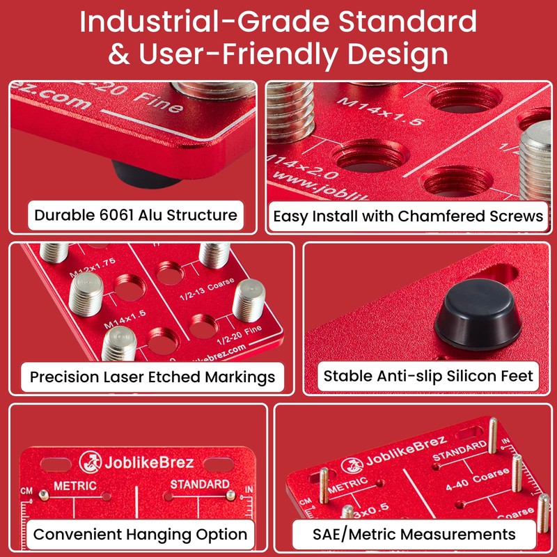 - Versatile Mounting Options: Featuring a convenient hanging hole and four anti-slip silicon feet, our thread checker offers versatile mounting options. Hang it on your workshop wall for easy access, or let it sit securely on any surface as you work C the choice is yours!