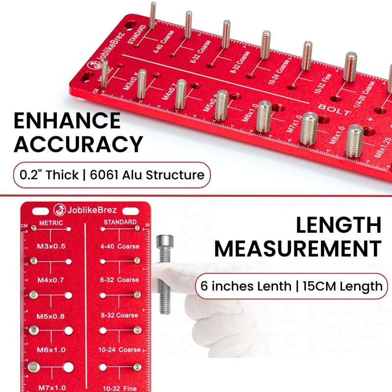 JoblikeBrez JoblikeBrez Thread Checker, 30 Nut and Bolt Thread Checker, Bolt Size and Thread Gauge 15 Standard & 15 Metric, Bolt Size Finder, Wall-Mountable Bolt Thread Identifier Gauge with Inch & CM Ruler
