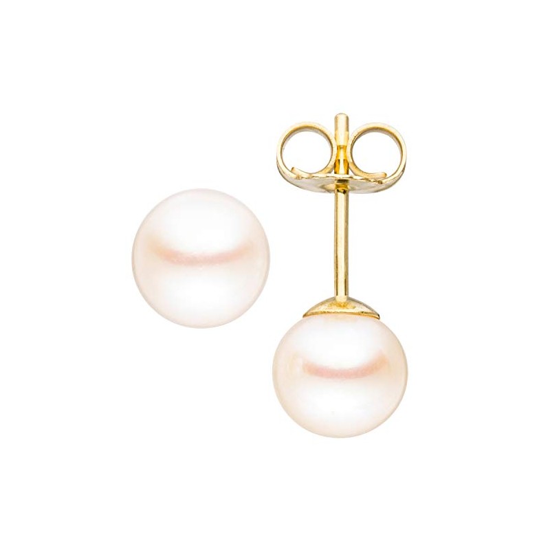 - 1 pair of stud earrings made of 14 carat (585) yellow gold with 2 freshwater cultured pearls, diameter of the pearls approx. 6 - 6.5 mm. Weight: approx. 1.3 g.