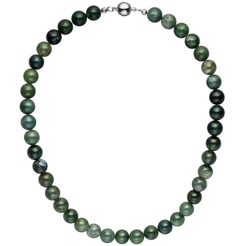 Jobo Women's Necklace Moss Agate 45 cm Stone Chain Gemstone Necklace, Metal, moss agate