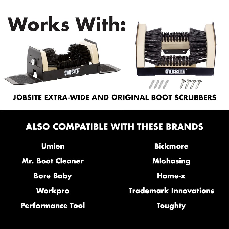 - COMPATIBLE WITH: JobSite Original Boot Scrubber & Extra Wide Boot Scrubber. Also compatible with other boot scraper brands including: Umien, Mr. Boot Cleaner, Bore Baby, WORKPRO, Performance Tool, Bickmore, MLOHASING, HOME-X, Trademark Innovations, and Toughty