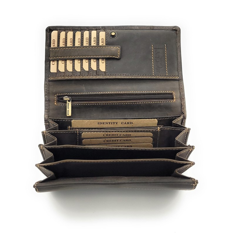 Jockey Club Genuine Leather Women's Wallet with RFID Protection, Long Full Cowhide Leather Toro Brown, brown, coin purse