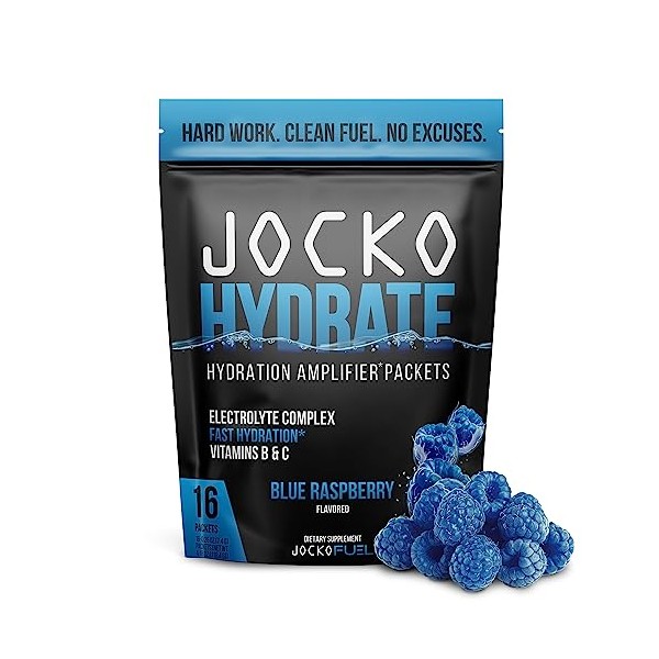Jocko Fuel Jocko Fuel Hydrate Electrolytes Powder Packets Low Sugar - Hydration Amplifier Packets for Recovery, Dehydration, & Exercise - with Vitamins B6, B12 & C (16 Packets) Blue Raspberry