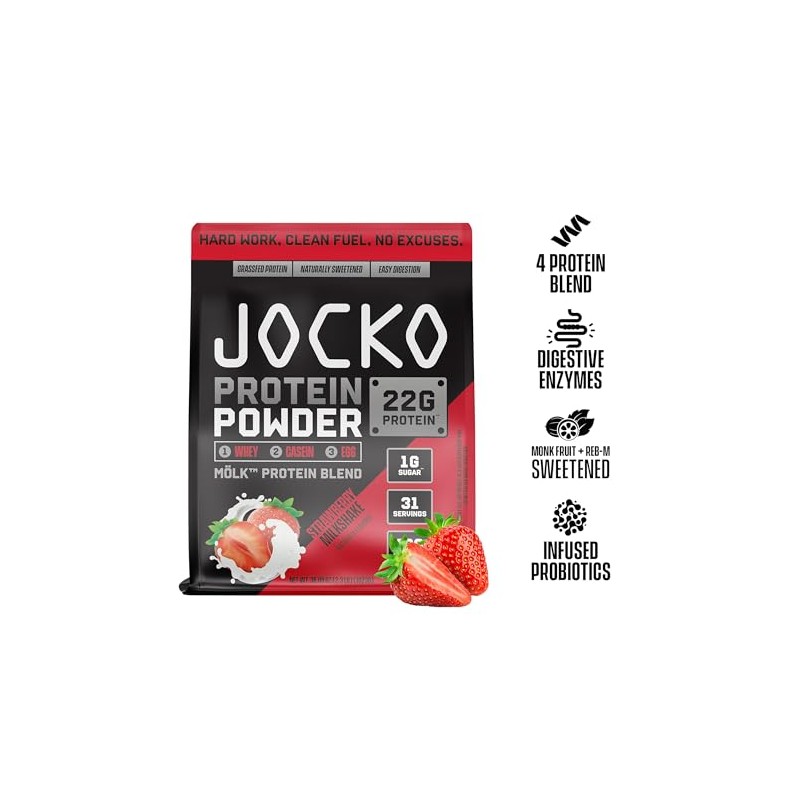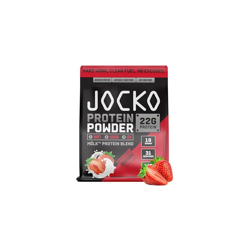 Jocko Fuel Jocko Fuel Mölk Whey Protein Powder 22g Low Sugar Monk Fruit Blend - Muscle Recovery & Growth, Packaging May Vary (31 Servings, Strawberry Milkshake)