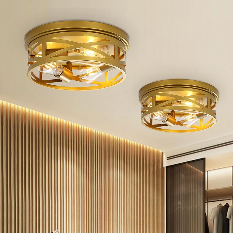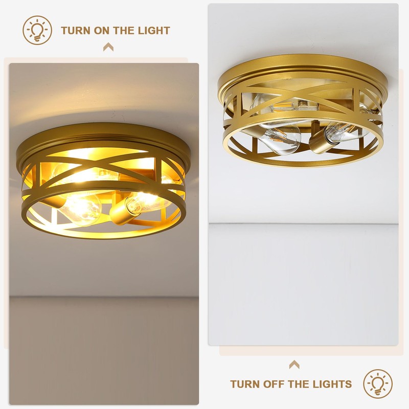 - Industrial Style: This 2-pack ceiling light measures 11.81 inches in diameter and 4.33 inches in height, featuring a golden finish and a ring-shaped metal cage light fixture for a vintage industrial style.