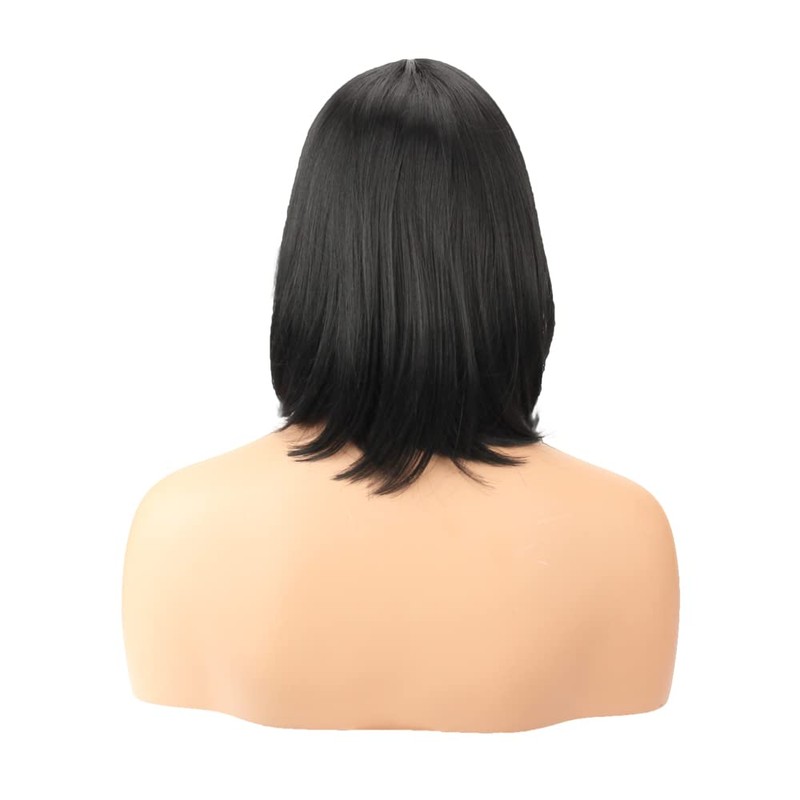 - Jodiss Bob Black Wigs for Women, Shoulder-length Straight Short Synthetic Wig, Pretty cute girl with wig Black