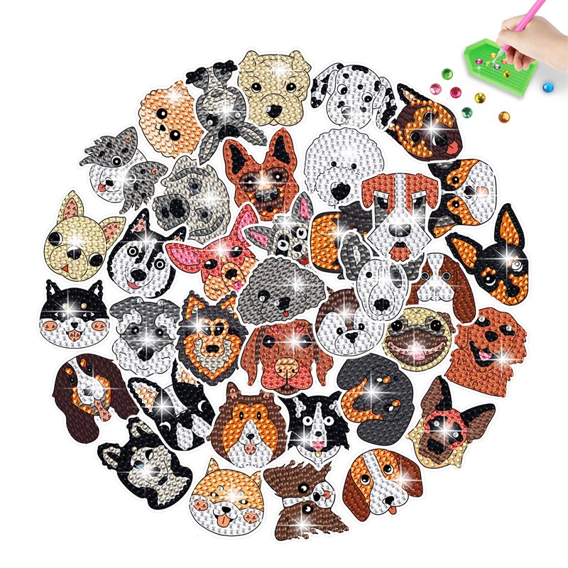 - 【Diamond Arts Craft Mosaic Stickers】 This diamond paintings stickers set includes 45 different kinds of pet dog patterns (such as husky, corgi, border collie, bichon, etc.), a number of drill packs, a dotting disc, a dotting pen, and a dotting clay. Full set of tools for your DIY fun!