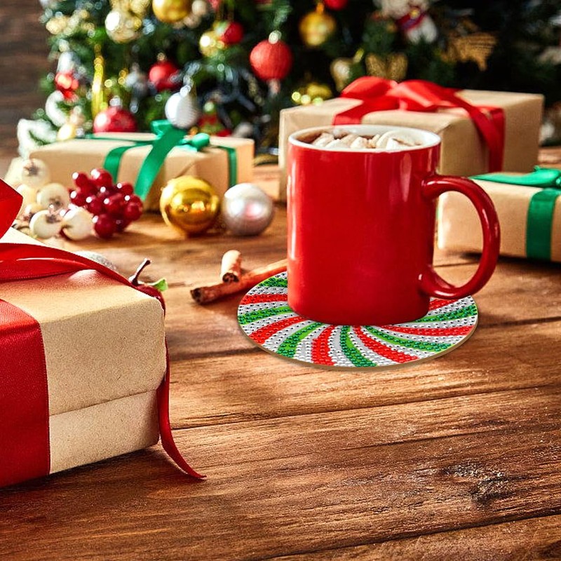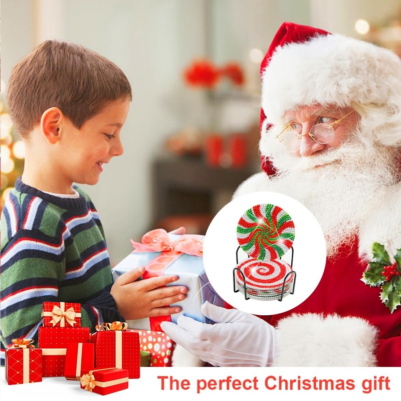 Jodsen 8Pcs Christmas diamond painting coasters,DIY Diamond Painting Coasters Kits with Holder,5D Christmas Diamond Painting Coasters,Diamond Art Kits Christmas Art Craft Supplies (Candy)