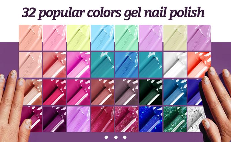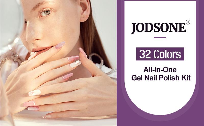 JODSONE 32+3 Pcs Gel Nail Polish Kit Soak Off Gel Polish Set Glitter Gel Nail Kit with No Wipe Base Coat Top Coat and Matte Top Coat for Nail Art Salon DIY at Home Manicure Kit