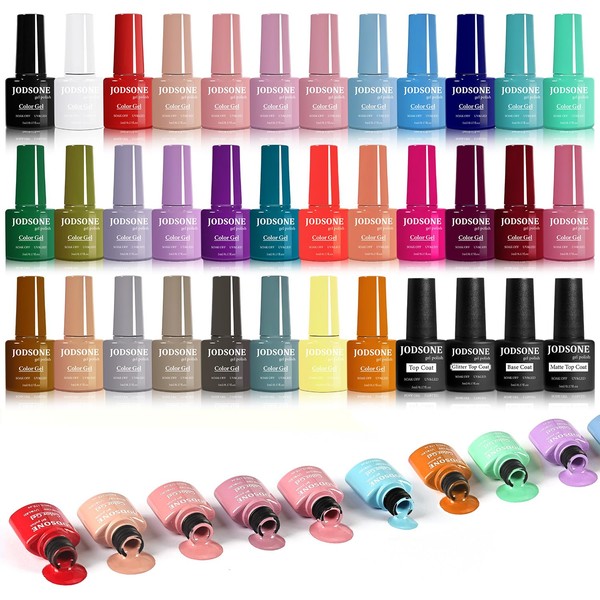 JODSONE 32 Colors Gel Nail Polish Set Same Color Same Bottle No Wipe Base Top Matte Glitter Coat Professional Choice