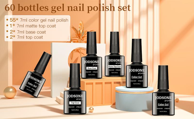 JODSONE Gel Nail Polish kit 60 PCS with 5 Bottles of Base and Glossy Matte Top Coat Soak off Gel Nail Set Suitable for All Seasons Gel Polish Gifts