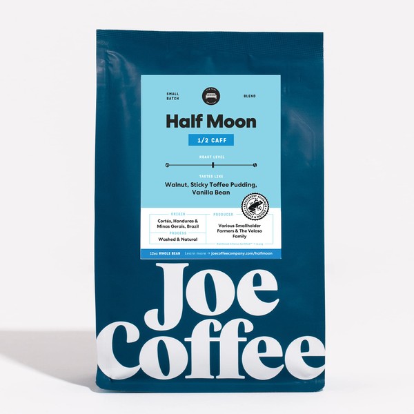 - HALF MOON 1/2 CAFF: Whether it’s your first cup of the morning or an afternoon pick-me-up, some moments call for a gentler cup of coffee. That’s where Half Moon comes in: this half-caff blend delivers all the comfort of your favorite coffee with only half the caffeine.