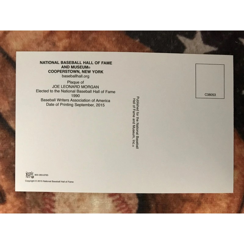Joe Morgan Postcard- Baseball Hall of Fame Induction Plaque - Reds Photo