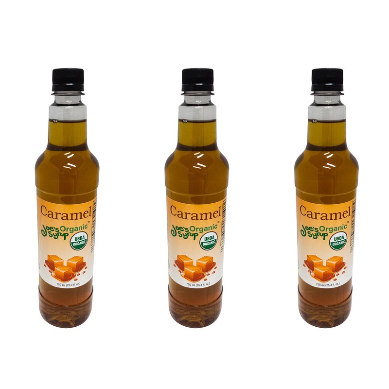 Joe’s Syrup Organic Flavored Syrup, Organic Caramel, 750 ml (3 Pack)