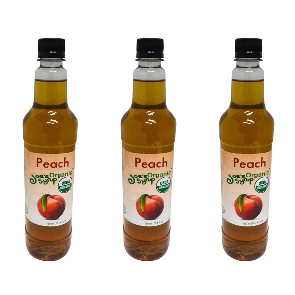 Joe’s Syrup Organic Flavored Syrup, Organic Peach, 750 ml (3 Pack)