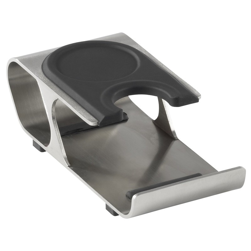 - High-quality espresso tamping station "Professional up", made of solid stainless steel with replaceable silicone pad, by JoeFrex
