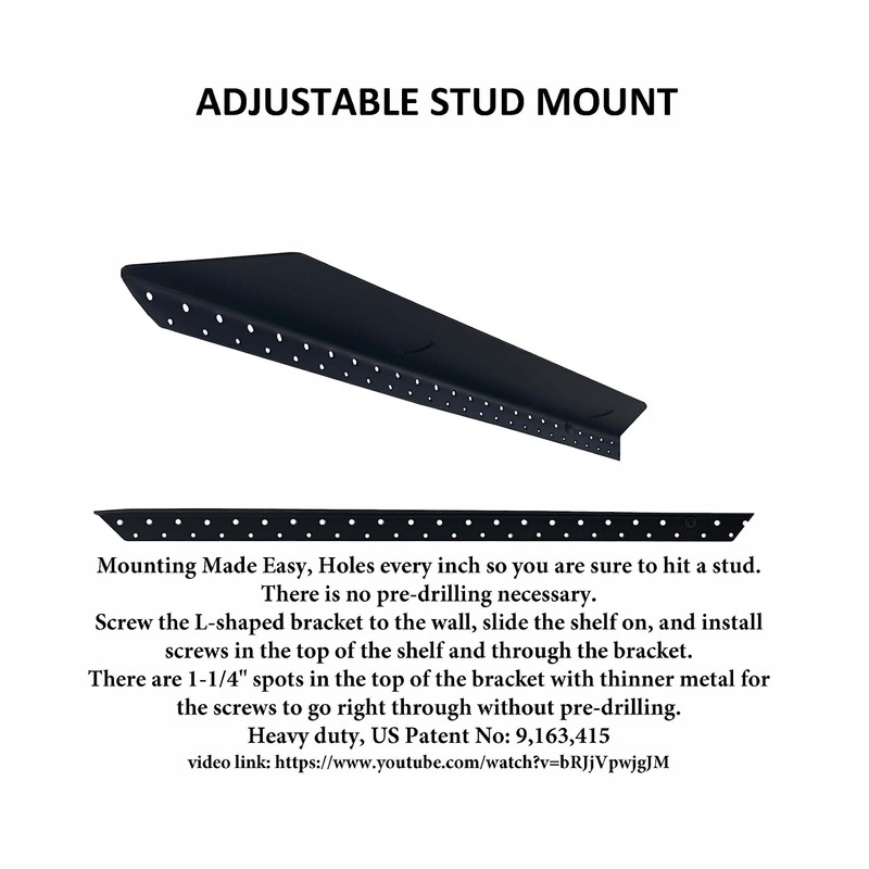 • EASY INSTALLATION: Our patented wood stud mounting system is a quick, easy, and heavy-duty solution. With pre-drilled holes every inch, our adjustable shelves can be effortlessly mounted anywhere, offering unmatched convenience.Installing our wood shelves is a breeze. The package includes all necessary hardware and step-by-step instructions, making the process quick and hassle-free. Simply mount the shelves securely on your wall, and you're ready to enjoy a clutter-free space in no time.