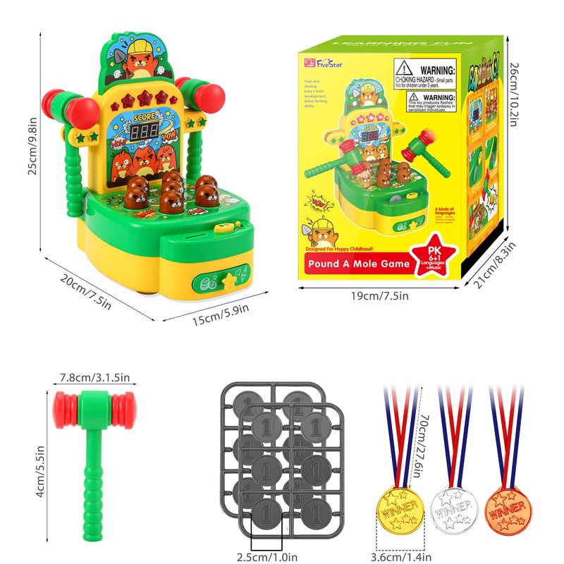 - Development of skills: Mole game promotes hand-eye coordination, train fine motor skills, improves concentration, promotes interpersonal communication, improves mobility and train your child's muscles. Six languages are available to choose from to enlighten children's language talents.