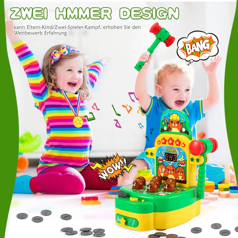 Joellfuner Whack Game, Mini Electronic Arcade Game, Hammering Mole Game, Coin Game with 2 Hammers, Parent-Child Interaction Hammer Game Toy for Children Aged 3-6 Years