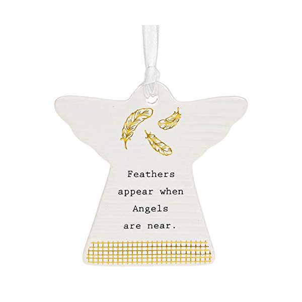 - I am offering for sale a charming ceramic Guardian Angel hanging sign decorations from Thoughtful Words. Each of the angels have a rippled surface with black and gold wording and decorations. Great gift for family or friends or just to a lovely decoration to hang around the home with the white ribbon attached. Each guardian angel has beautiful sentimental words, fitting for many occasions. Each decoration comes boxed and it's always comforting to know that you have an angel looking over you.