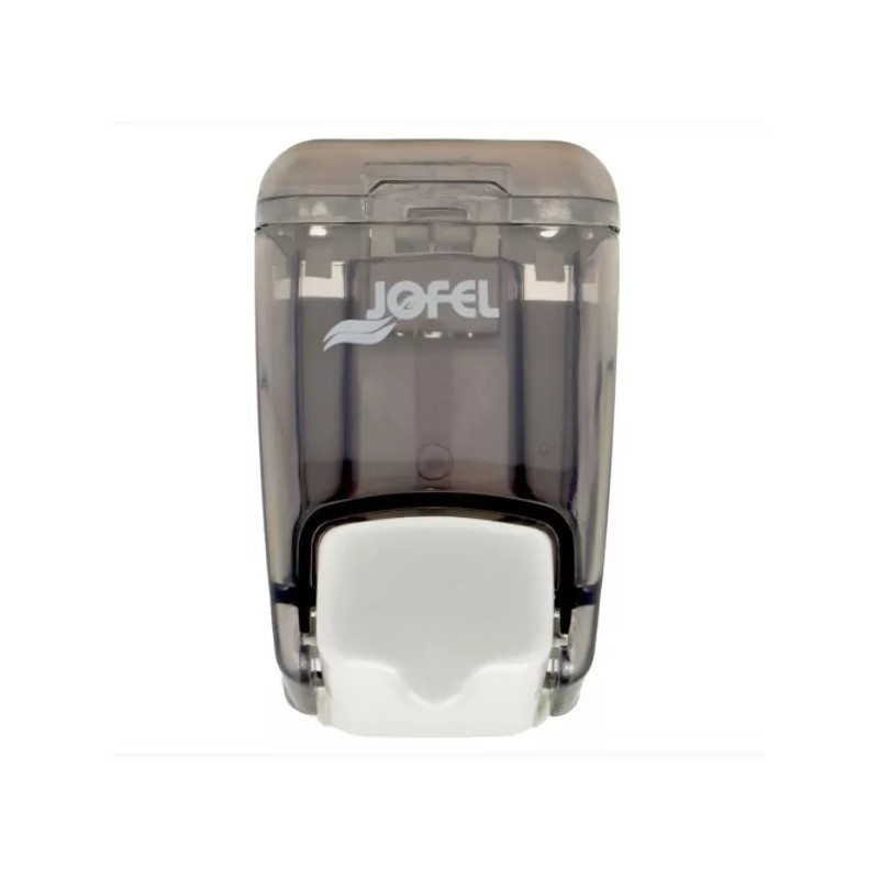 Dosificador mini Jofel, ayuda a dispensar el jabón líquido o gel antibacterial dentro de las habitaciones del hogar. Su estructura rectangular cuenta con un depósito rellenable de 400 ml y su mecanismo brinda el jabón o gel al apretar su palanca que se encuentra en su parte inferior. Está fabricado en plástico resistente color gris humo con base blanca que lo hace llamativo, sus medidas son 13.5 x 8.2 x 11.5 cm. El empaque incluye kit de instalación y llave de seguridad.