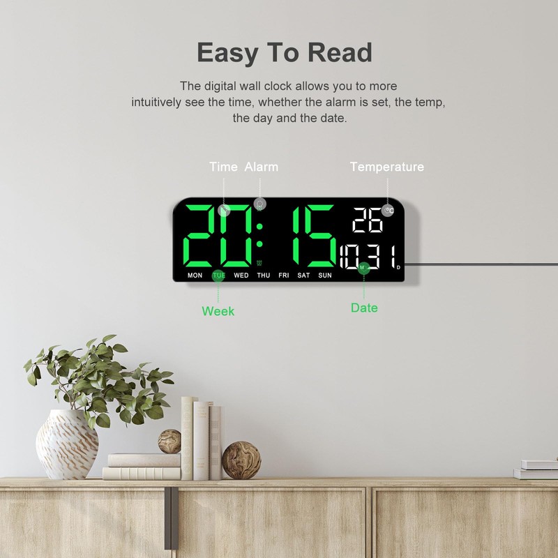 - โใ๐๐ฎ๐๐ฅ ๐๐ฅ๐๐ซ๐ฆ & ๐๐ฎ๐ญ๐จ ๐๐ซ๐ข๐ ๐ก๐ญ๐ง๐๐ฌ๐ฌ ๐๐ข๐ฆ๐ฆ๐๐ซใ The digital clock for wall includes dual alarm functions to read the time while also helping to remind you and your family in the form of an alarm when you can't get up in the morning or need to do time management, making it an indispensable alarm clock for kids, elderly and family members. Loud alarm clock also has a built-in light sensor that automatically adjusts the brightness according to the ambient light in the room, so if you want to read the time clearly at any time, you can manually adjust the brightness of the clock on demand, bringing convenience to your family.