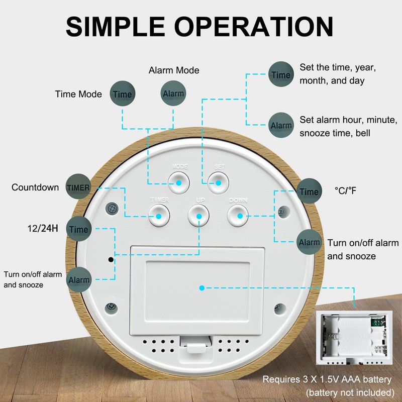 - ๐๐๐ญ๐ญ๐๐ซ๐ฒ ๐๐ฉ๐๐ซ๐๐ญ๐๐: The small clocks battery operated is powered by 3 x 1.5V AAA any batteries (not included). Free from the constraints of a power cord, this small alarm clock for bedside can be placed anywhere, offering greater convenience. This table clocks for living room also includes a countdown function, with a max countdown time of 23h59min59s, making it a practical tool for daily time management.