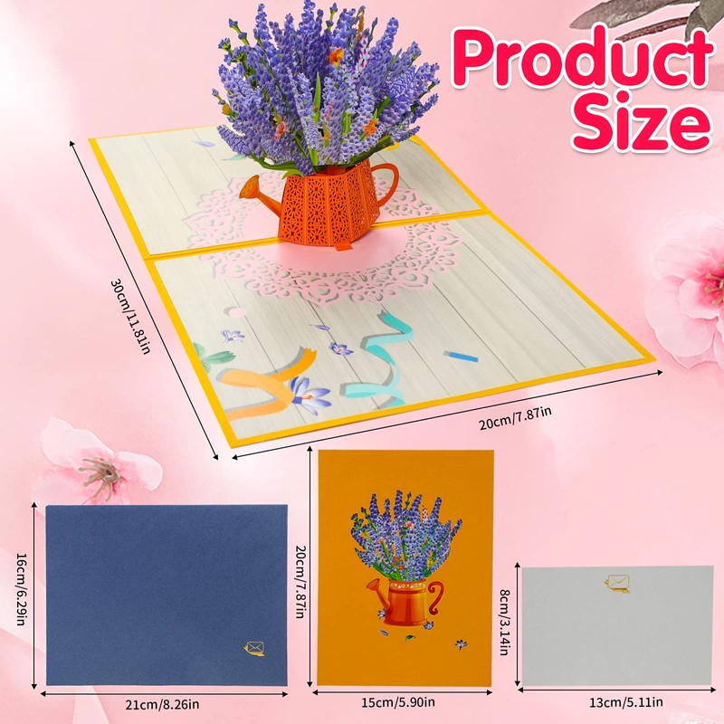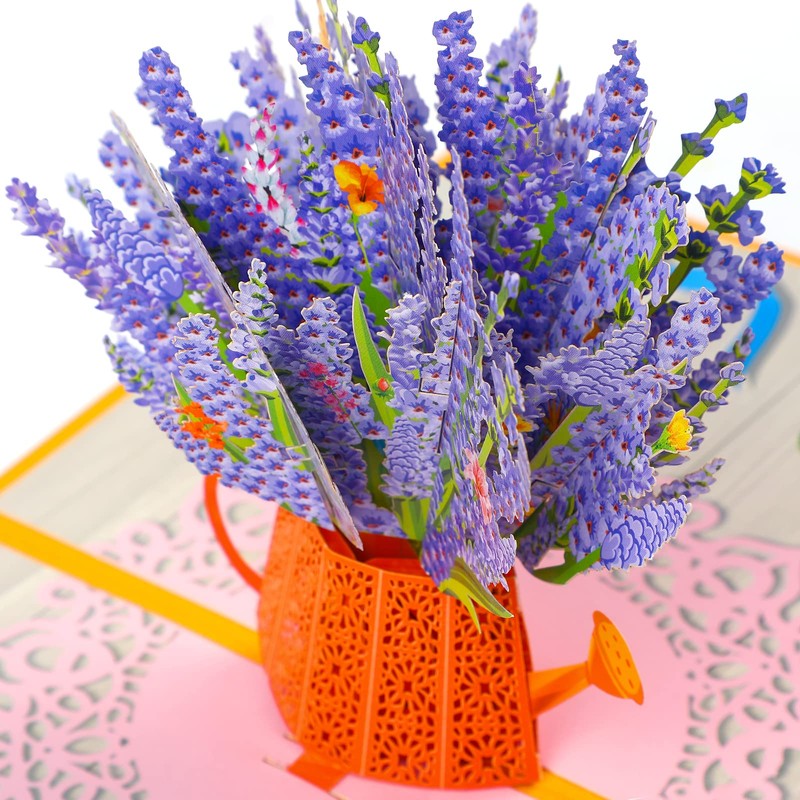 - Design: the 3D pop-up card is made of paper carving. When closed, it looks like an ordinary greeting card. When opened, the lavender pattern is three-dimensional, and the lavender is colourful and lush, which will surprise the recipient.