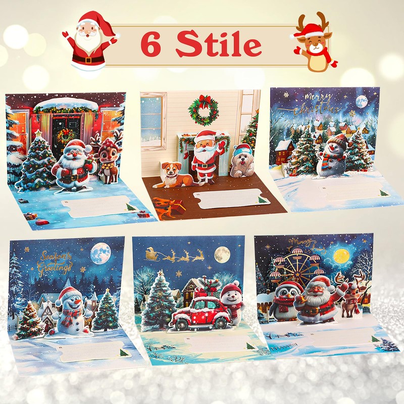 - Creative 3D design: this is not only an ordinary greeting card, it contains endless surprises. Each greeting card is carefully designed, and when you open it, a beautiful three-dimensional 3D pattern pops into your eyes. Whether it is a dazzling Christmas tree, a cute snowman or a friendly Santa Claus, they are all lifelike, as if you were taking you into a dreamy Christmas world.