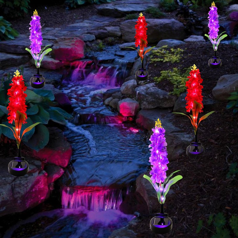 - Easy to Use:This delphinium solar lights for outside with no wiring or additional power source required, simply plant the solar lights outdoor garden in your garden, flick the switch on, and indulge in the beauty of decorative flower lights. The solar yard lights automatically charge during the day, and at night the outdoor lights solar powered automatically illuminates to create a romantic and comfortable environment on summer nights.