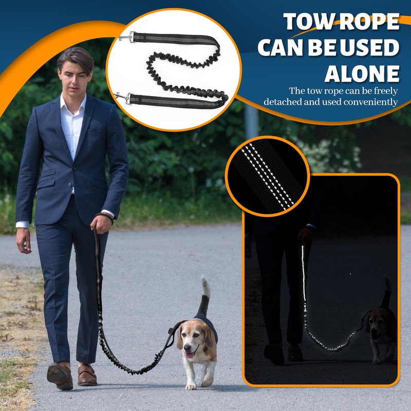 - Double handles belly belt dog: the jogging lead dog can absorb shocks and pulling forces from medium and large dogs. cushion your pet for more comfort. Dog jogging lead also has two handles for better control in case of possible crossings with other dogs, cars or people.