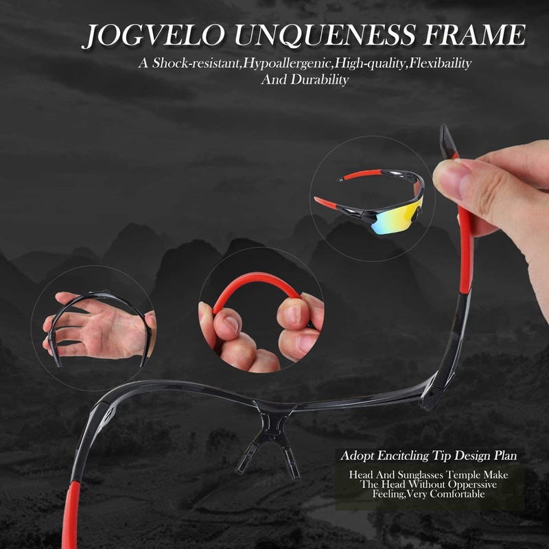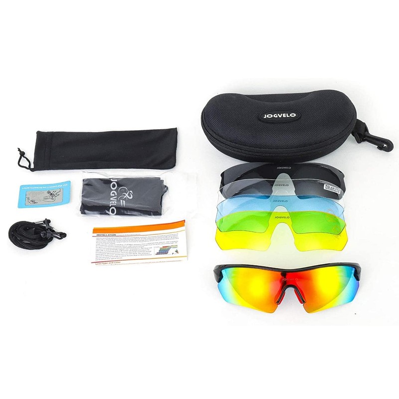 JOGVELO Cycling Sunglasses, Sport Sunglasses Polarized for Men UV400 Protection with 5 Interchangeable Lens for Cycling Running Baseball Golf, Red