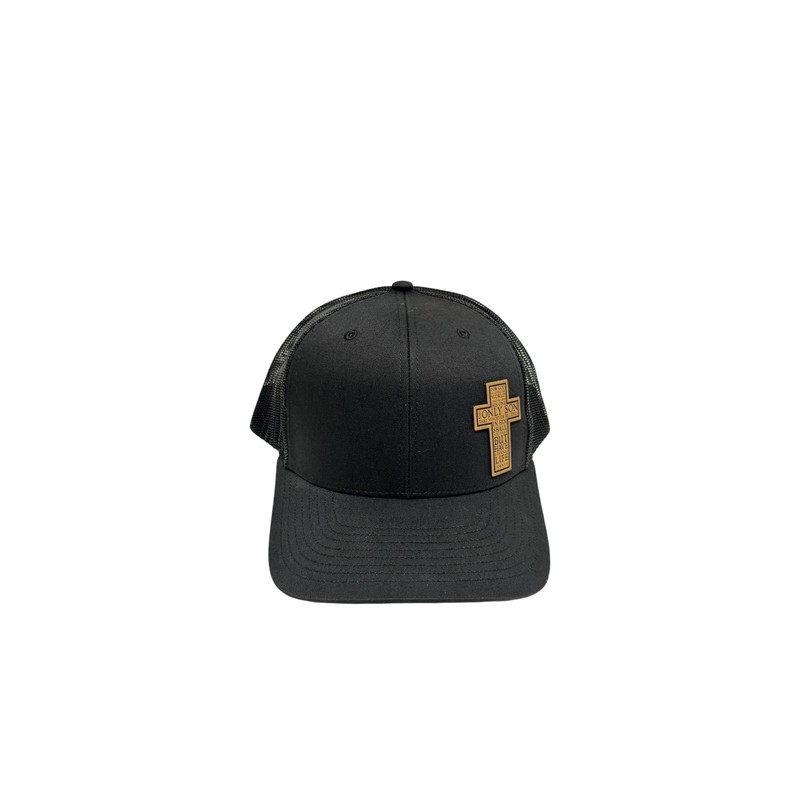 John 3:16 Verse Laser Engraved Cross Trucker Hat, Meshback, Adjustable Snapback (US, Alpha, One Size, Black - Cypress Wood/Black Big Cross)