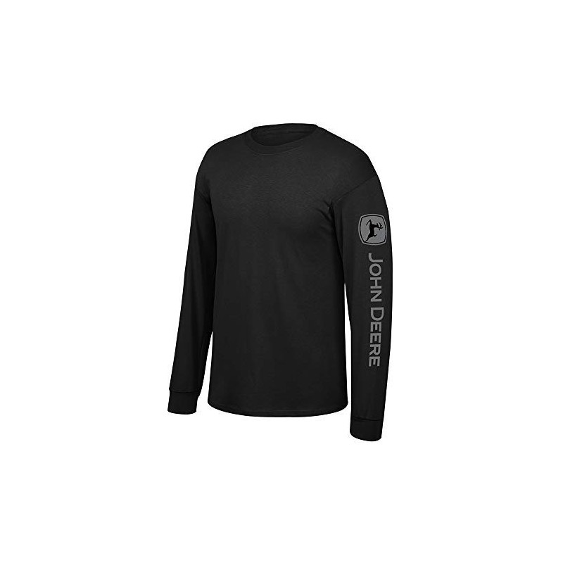 John Deere Solid Long Sleeve Tee with Logo on Sleeve, Black- Medium