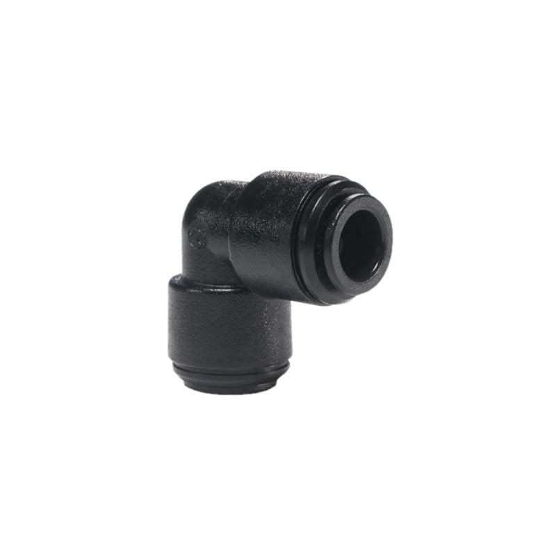 The John Guest Equal Elbow Pushfit Connector delivers exceptional performance in fluid and pneumatic systems where precise 90-degree turns are required. This 8mm connector features innovative pushfit technology on both ends, enabling quick, secure installations without the need for special tools. Crafted from robust acetal copolymer, this fitting maintains excellent dimensional stability and offers superior resistance to wear and corrosion. The connector's design ensures reliable, leak-free operation in applications involving potable liquids and inert gases. Its compact profile makes it ideal for tight spaces, whilst the black finish provides a professional appearance. Perfect for low-pressure systems, this connector maintains consistent performance across various operating conditions. The pushfit mechanism allows for simple pipe insertion and secure connection, making it a practical choice for both professional installers and DIY enthusiasts working on plumbing or pneumatic projects.