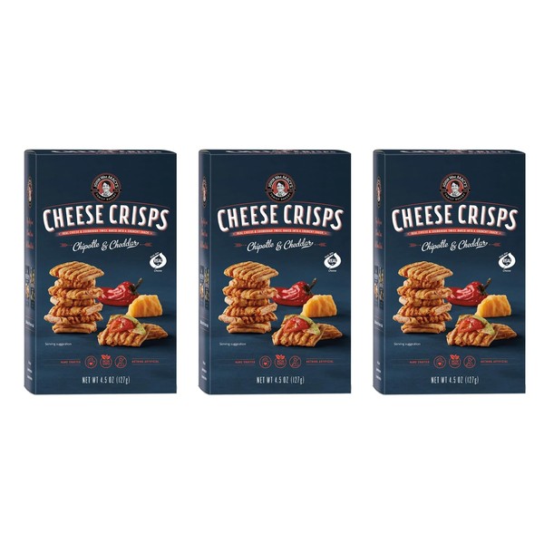 John Wm. Macy - Chipotle & Cheddar CheeseCrisps - Hand Crafted, Non GMO, and Nothing Artificial - Made with Real Cheese - 4.5 oz. Cartons - 3 Pack