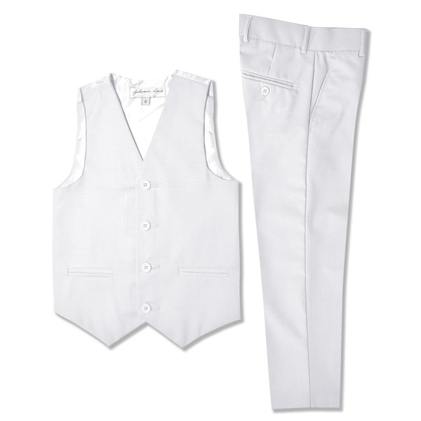 Johnnie Lene Boys Formal Vest and Pants Set #JL42 (8, White)