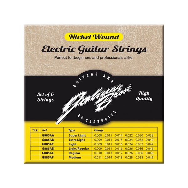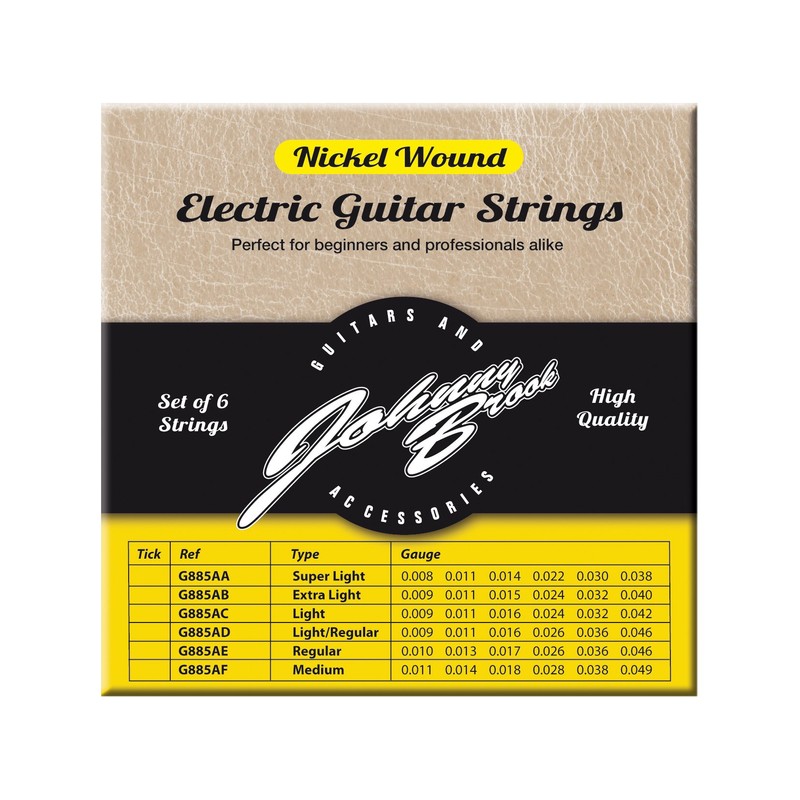 Johnny Brook Set of 6 Nickel Wound Electric Guitar Strings (Extra Light)