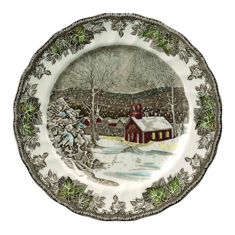 Johnson Brothers Friendly Village School House 10.5" Dinner Plate, Red/Green/Silver/Blue